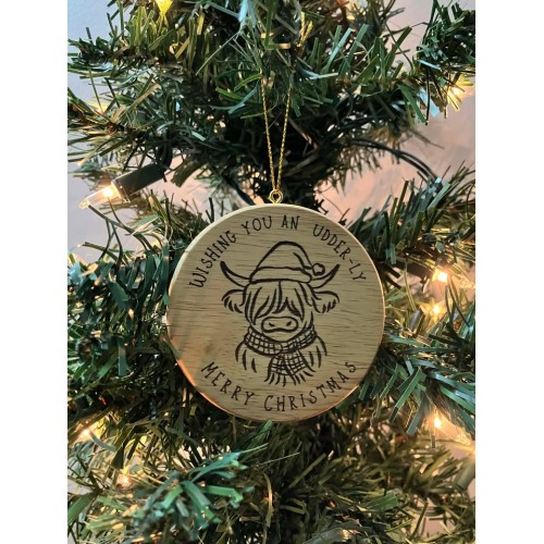 Add a timeless, handcrafted touch to your décor with this laser engraved oak ornament. Crafted from solid oak and precision engraved, each 3-inch ornament highlights the natural grain and warmth of the wood, making every piece truly one of a kind.